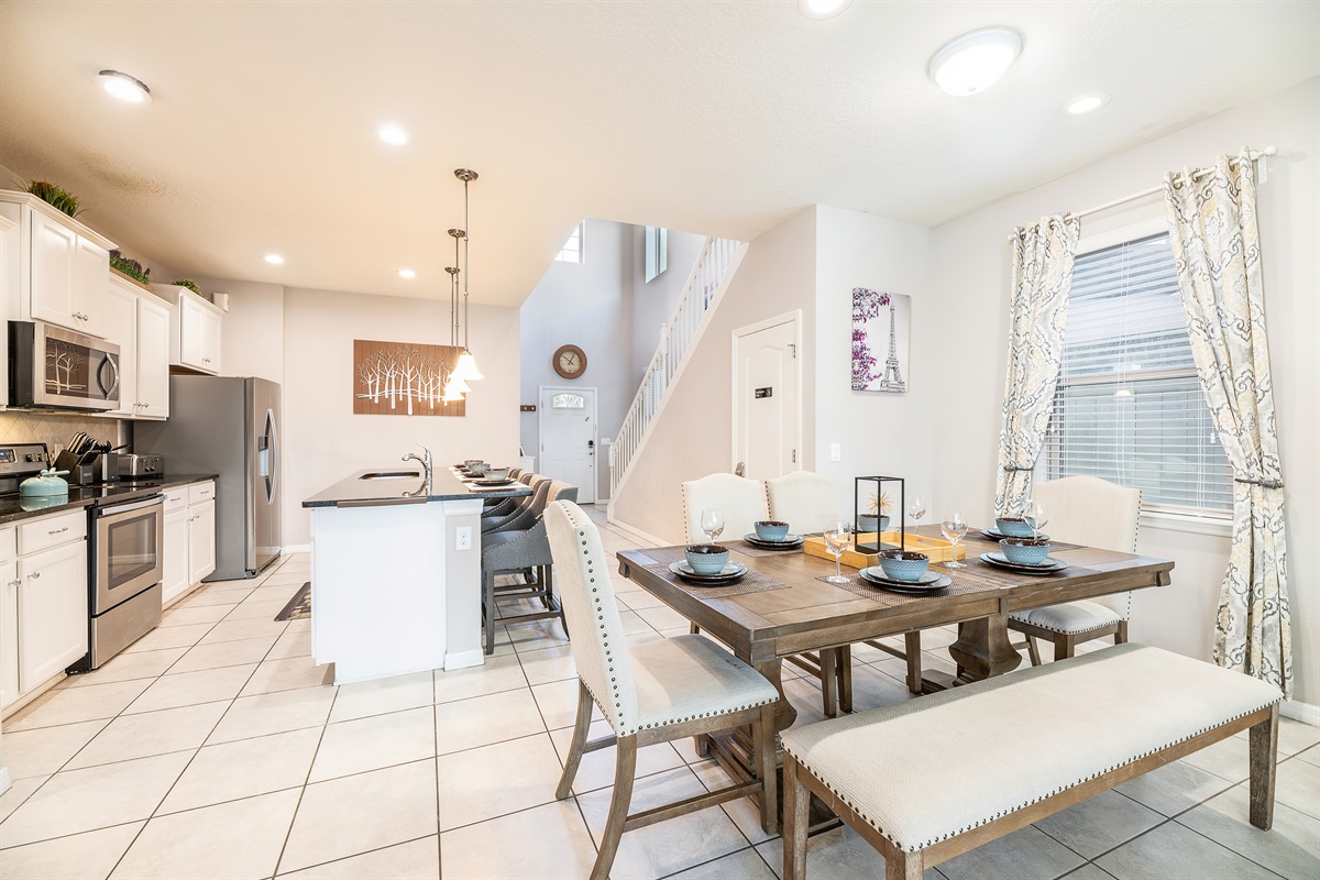 6 Bedrooms • 5 Bathrooms (4 full, 1 half) 5 Baths (4 full, 1 half) • Sleeps 10-14Escape to the Grand Getaway - your luxurious 6-bedroom vacation rental in Kissimmee, where unforgettable memories with loved ones await.. It features a stunning living room, well-equipped kitchen and dining area, a fun game room, a pool and patio area, a cozy family/theater room, and elegant bedrooms that are equipped with large TVs for your entertainment. Additionally, the kids' bedrooms are designed with Disney Princess and Avengers themes, providing a playful atmosphere for children.